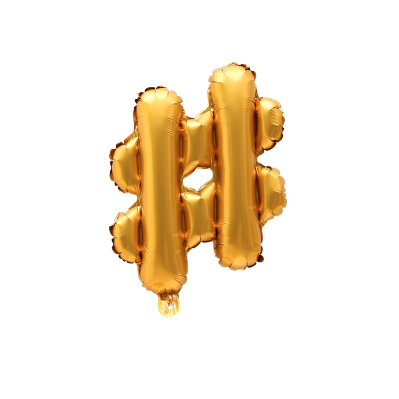 Creëer een leuke quote met deze gouden aluminium ballon in de vorm van een hashtag. In de verpakking zit een rietje, waarmee de ballon opgeblazen kan worden. De ballon is voorzien van een zelfsluitend ventiel, zodat je hem niet dicht hoeft te knopen. Het materiaal van de ballonnen is aluminium nylon. Je kunt lang van de ballon genieten, loopt niet zomaar leeg! Hang deze sfeermaker in je huis tijdens een feestelijke gelegenheid of hang ze onder de overkapping voor een gezellig sfeertje.