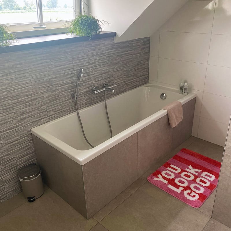 Heb jij Badmat You Look Good - roze/oranje/wit - 50x70 cm? Schrijf een review!