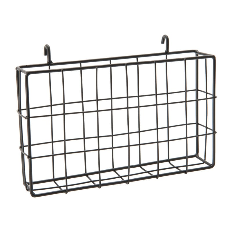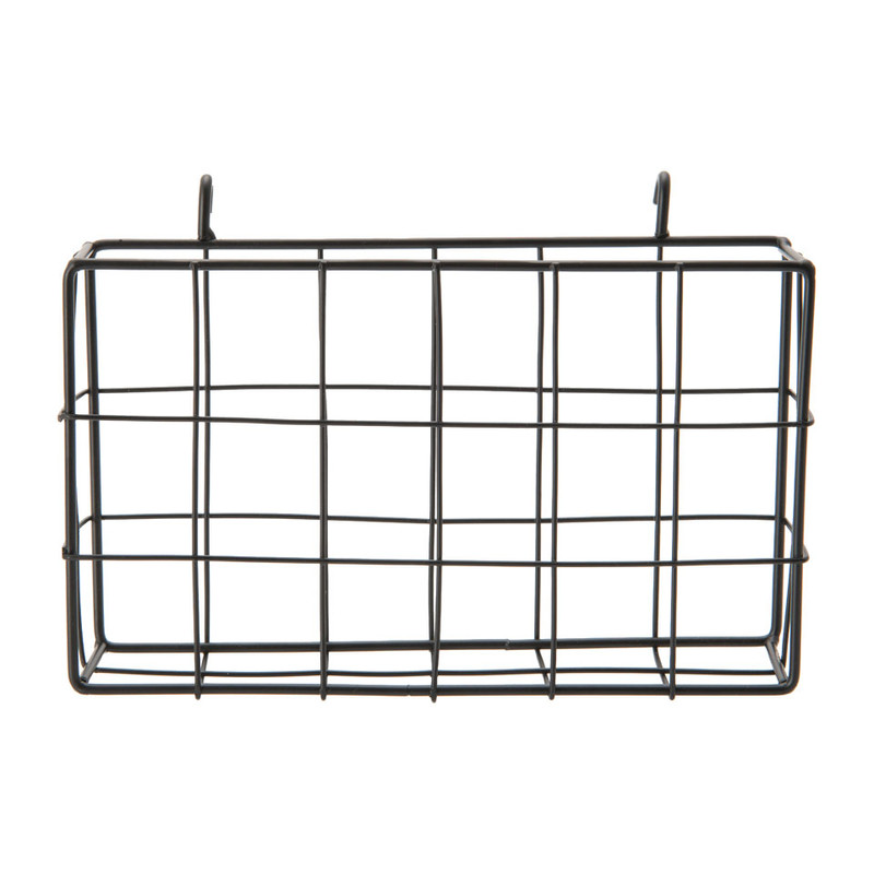 Pimp je wandrekje met deze bakjes, haakjes en clips. Dit bakje voor een wandrek is superhandig voor het bewaren van losse spulletjes. Naast je to-do lijstjes, foto's en andere belangrijke dingen aan die je aan een wandrek hangt kun je ook pennen of andere accessoires bewaren. Zo maak je in een handomdraai een persoonlijke wanddecoratie. Het opbergbakje is van zwart staal en heeft een afmeting van 20x14 cm. Er zitten 2 haakjes aan waardoor je het eenvoudig aan een wandrek kan ophangen. Dit model is in verschillende formaten verkrijgbaar. Bekijk ze allemaal online.
