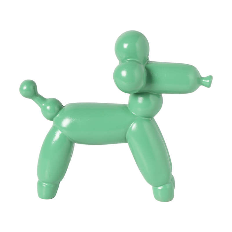 Dit opvallende kunstwerk is een echte eyecatcher in elk interieur! De ballonvormige hond trekt direct de aandacht in je woonkamer, slaapkamer of hal en brengt een speelse sfeer in de ruimte. Of je nu een liefhebber bent van moderne kunst, een verzamelaar van unieke woondecoratie of gewoon op zoek bent naar iets unieks voor in je huis, deze ballonvormige hond past perfect in elke setting. Het beeld is gemaakt van polyresin en heeft een groene kleur. Het ballonvormige hondje heeft een hoogte van 17 cm, een breedte van 15.5 cm en een diepte van 7 cm.