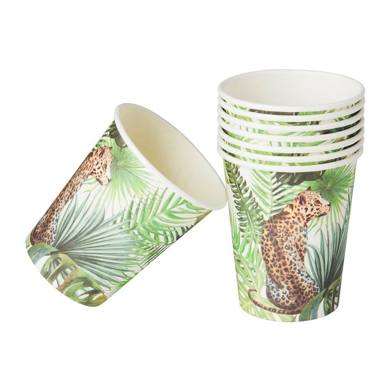 Met deze wegwerpbekertjes serveer je drankjes in stijl op een feestje. De bekers zijn voorzien van een tropische print. De set bevat 8 papieren bekertjes. Combineer de bekertjes met het overige servies uit deze serie voor een feestelijk geheel op tafel.