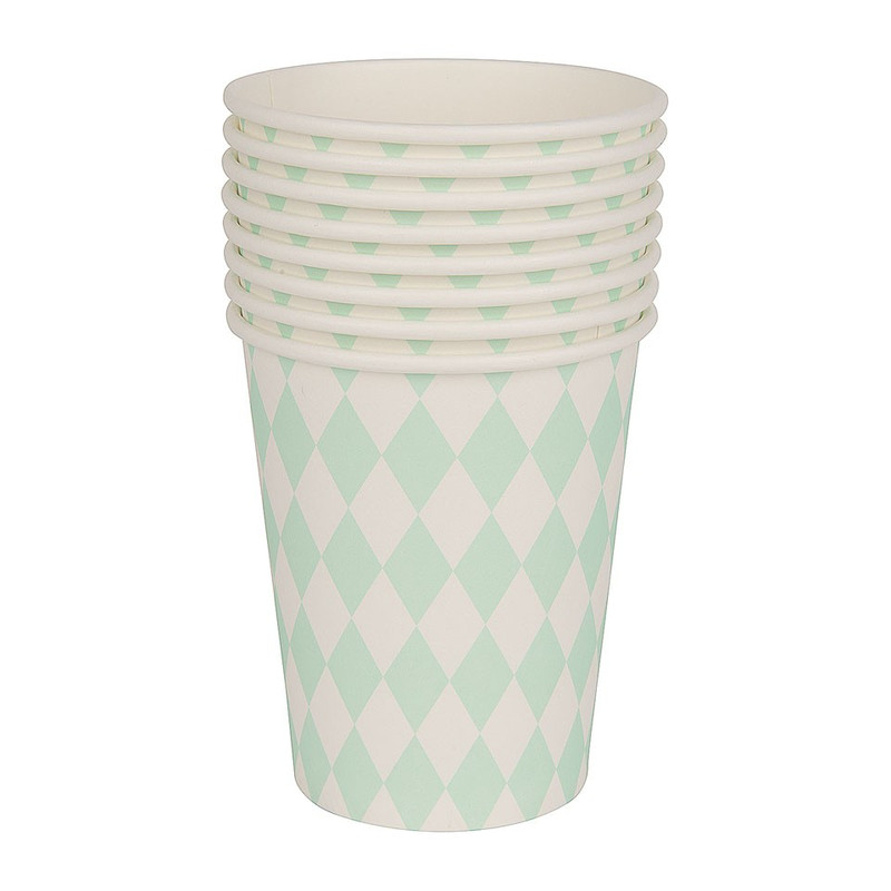 Bekertjes pastelkleuren - ruit mint groen - set van 8