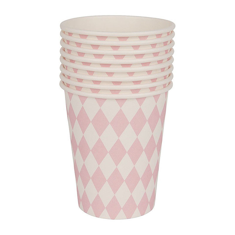 Bekertjes pastelkleuren - ruit roze - set van 8