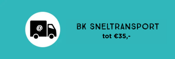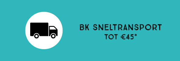 De verzendkosten voor een levering via BK Sneltransport zijn afhankelijk van de grootte en het gewicht van het artikel. Maximaal komen deze uit op €35,- in Nederland en €45,- in België. Op de productpagina vind je de specifieke verzendkosten. BK Sneltransport bezorgt in heel Nederland en België.