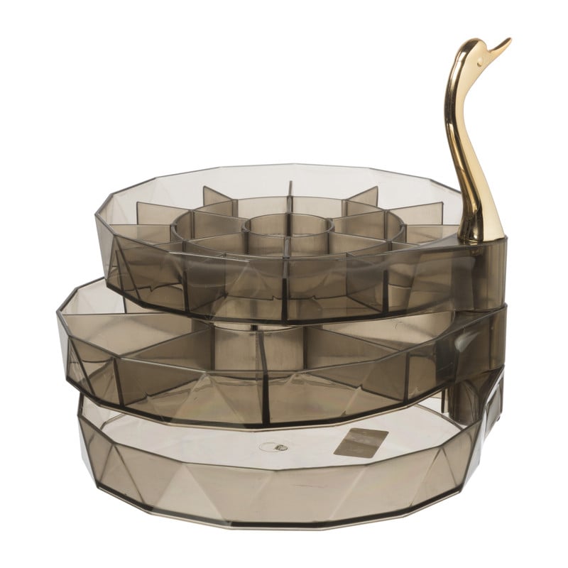 Berg je sieraden op in dit prachtige zwanen bijouxdoosje. Mooi, schattig en handig! Perfect voor al jouw sieradeen. Het bijouxdoosje is gemaakt polyester en plastic en heeft een afmeting van 17x15.5x15 cm.