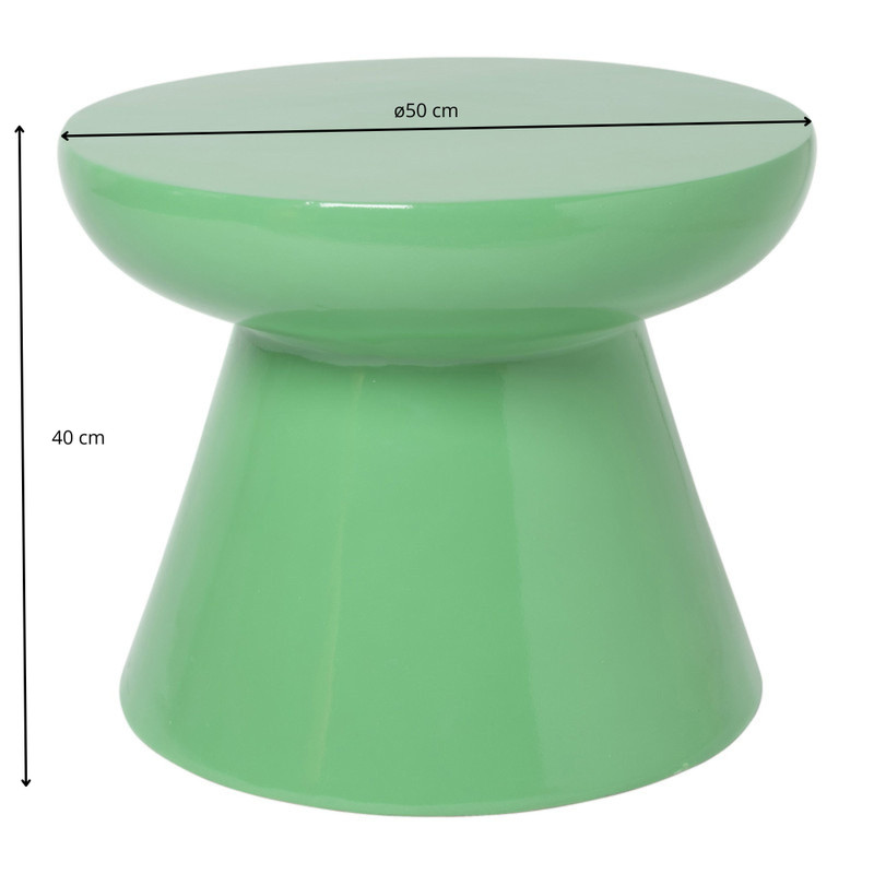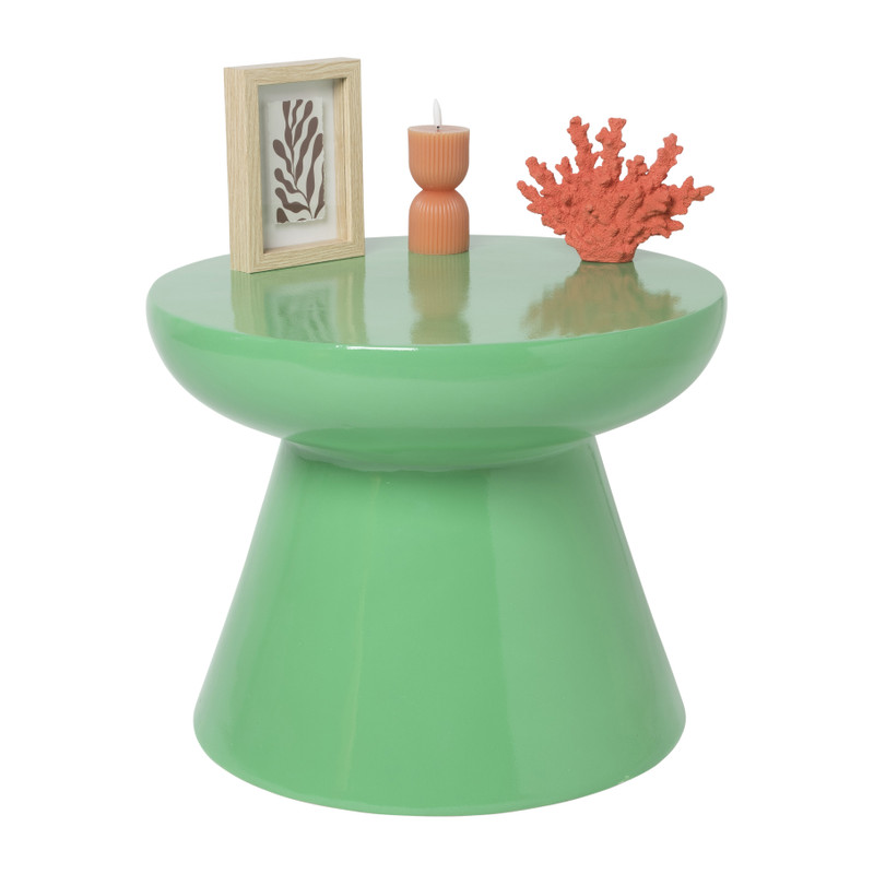 Deze kleurrijke bijzettafel is de perfecte aanvulling op jouw interieur! Met zijn ronde vorm en zijn vrolijke groene kleur is bijzettafel conisch niet alleen functioneel, maar ook nog eens een mooie toevoeging aan jouw woonkamer. Deze bijzettafel is alleen geschikt voor binnenshuis gebruik.