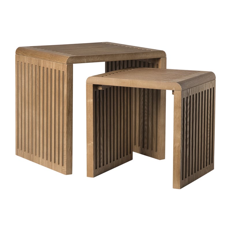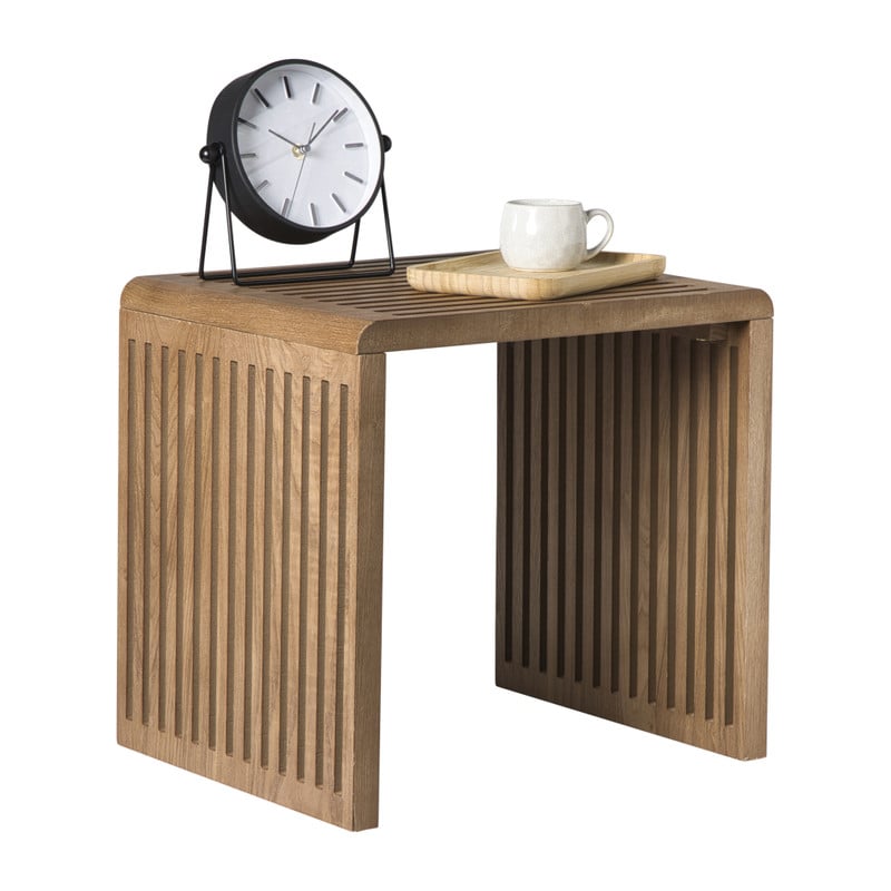 Strak, warm en natuurlijk: deze bijzettafel in Japandi-stijl is dé must-have voor iedereen die houdt van een rustig, modern interieur met karakter. De tafel is gemaakt van bruin hout en heeft een open lattenstructuur, wat zorgt voor een luchtige en minimalistische uitstraling.