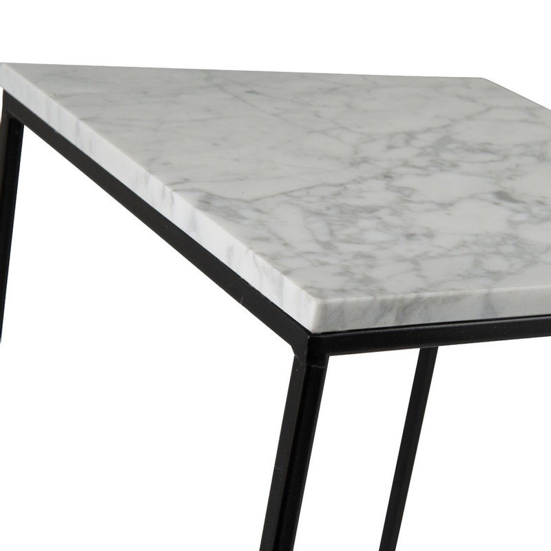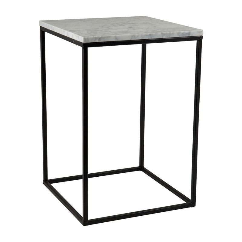Stijlvol vierkant bijzettafeltje met een wit marmerblad en een frame van staal. Dit bijzettafeltje staat leuk naast een fauteuil of naast de bank voor je drankje en hapje. Het tafeltje kun je ook als eyecatcher in de woonkamer zetten met een leuke vaas of kaars erop! De afmetingen zijn: 30x30 cm en 43 cm hoog. Het blad is van steen met een wit marmeren uitstraling, maar is ook in het zwart verkrijgbaar. Bekijk ook onze andere bijzettafeltjes!