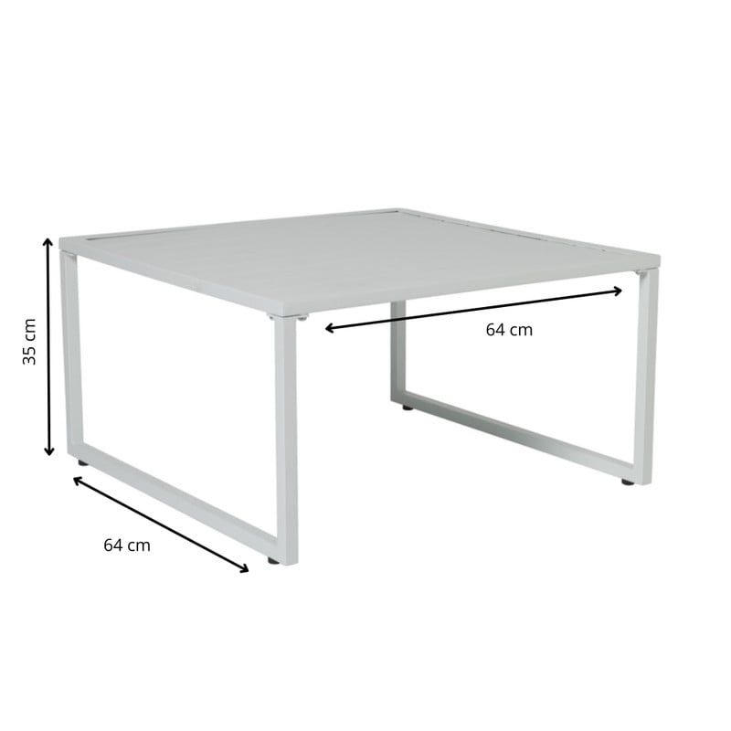 Het bijzettafeltje heeft een hoogte van 35 cm, een breedte van 64 cm en een diepte van 64 cm.