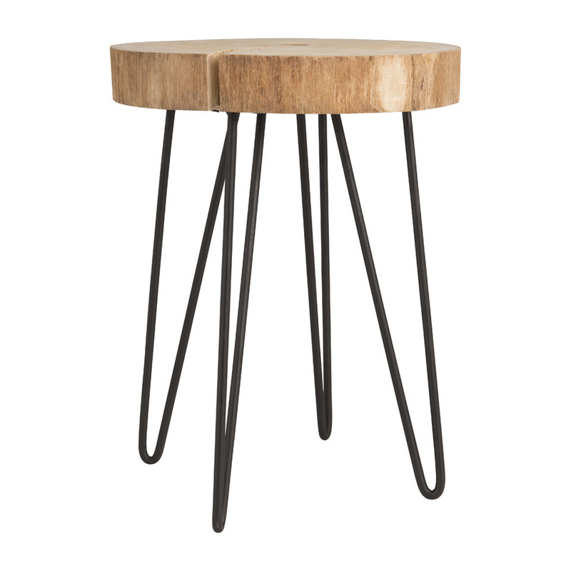 Dit toffe exemplaar heeft een tafelblad van boomstam en de pootjes zijn gemaakt van metaal. Het is een ontwerp dat zich thuis voelt in diverse interieurstijlen. Van Industrieel tot bohemien.