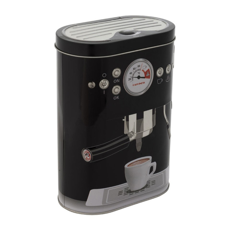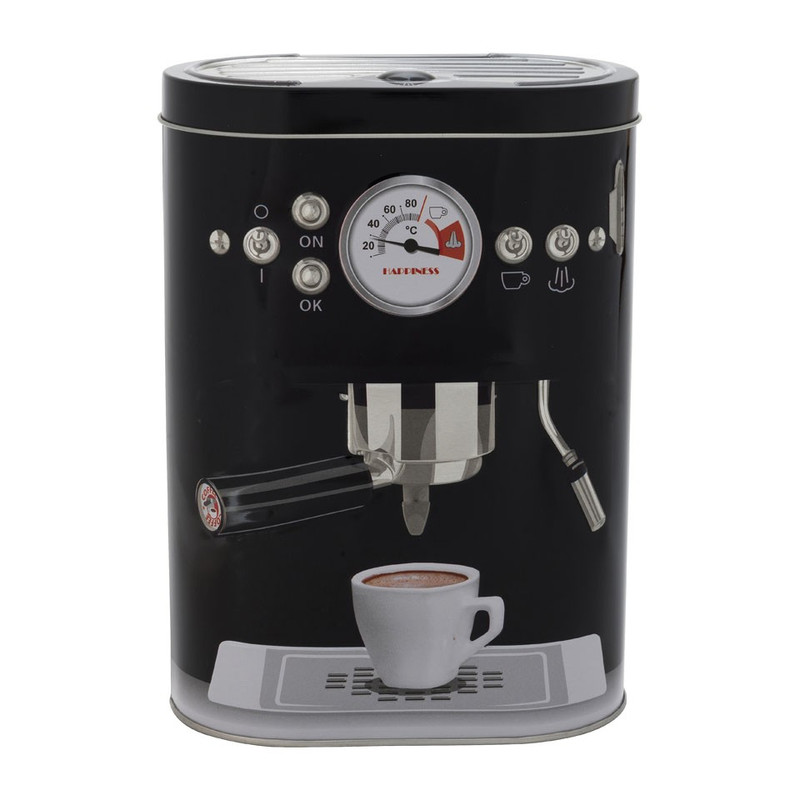 Leuk en handig blik die eruit ziet als een koffiemachine. Handig om bijvoorbeeld je koffiekoekjes, -bonen of suiker in te bewaren. Het blik heeft een retro uitstraling en is gemaakt van tin. Leuk om op of in de kast naar te zetten.