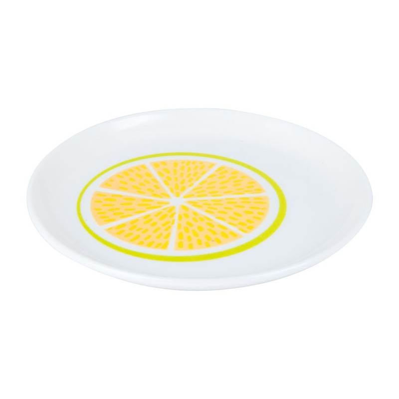 Haal de zomer in huis met dit vrolijke bordje citroen. Doordat dit bord is gemaakt van melamine, is het perfect om ergens mee naartoe te nemen. Als je ergens gaat picknicken bijvoorbeeld. Ook handig om kinderen van te laten eten. Daarnaast ziet het bord er super fleurig uit op een mooi gedekte tafel. Het bord heeft een diameter van 13 cm. Naast dit bord, heeft Xenos nog meer servies in tropische stijl.