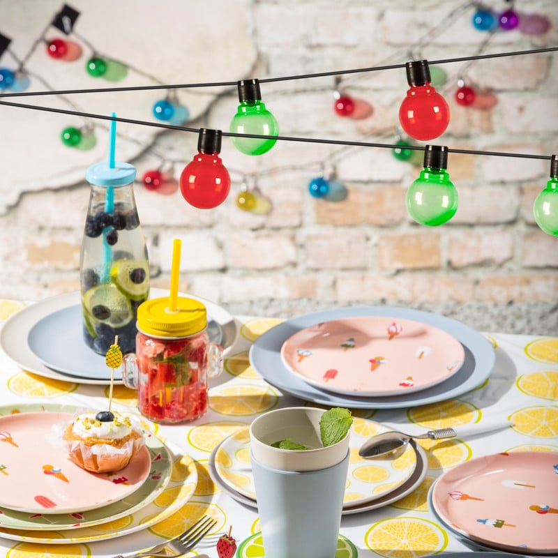 Haal de zomer in huis met dit vrolijke bordje citroen. Doordat dit bord is gemaakt van melamine, is het perfect om ergens mee naartoe te nemen. Als je ergens gaat picknicken bijvoorbeeld. Ook handig om kinderen van te laten eten. Daarnaast ziet het bord er super fleurig uit op een mooi gedekte tafel. Het bord heeft een diameter van 18 cm. Naast dit bord, heeft Xenos nog meer servies in tropische stijl.