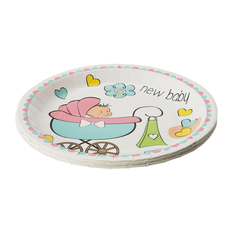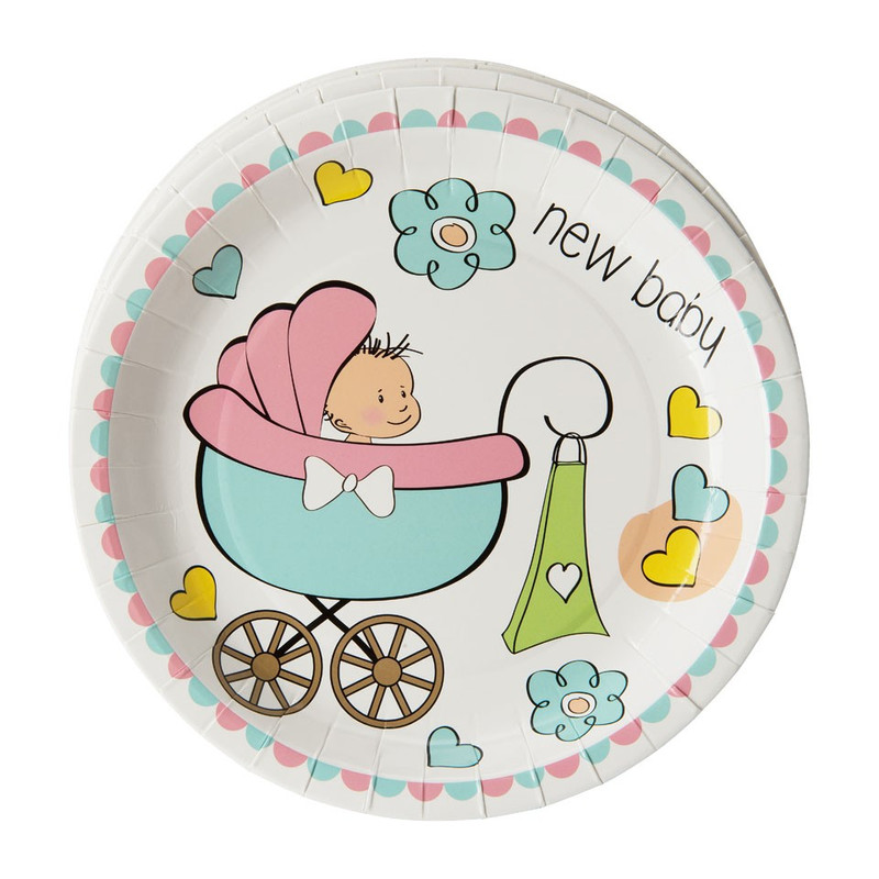 Baby geboren? Dan komt deze set van 8 vrolijke wegwerpbordjes vast en zeker van pas. Handig om te gebruiken tijdens je kraamfeest of babyshower bijvoorbeeld. De bordjes hebben een leuke print en zijn gemaakt van stevig karton. De diameter van de bordjes is 22.5 cm. Combineer deze met andere artikelen uit deze serie om er een mooi geheel van te maken.