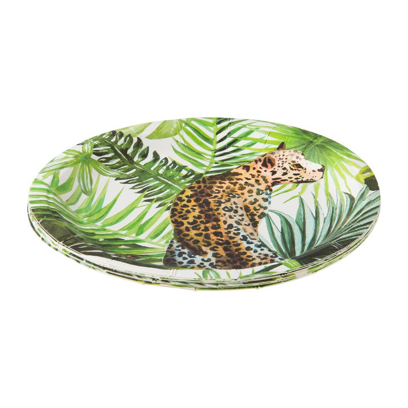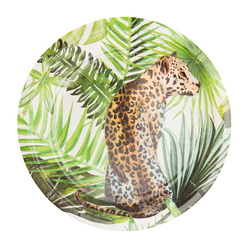 Dit papieren bord met tropical garden print is perfect om te gebruiken voor een feestje. Het bordje heeft een diameter van 18 cm. Een prima formaatje voor taart of broodje. Combineer de bordjes met het andere wegwerpservies uit deze serie om er een mooi geheel van te maken op tafel.
