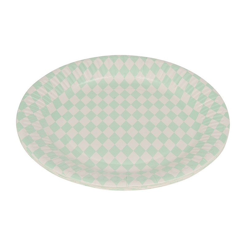 Bordjes pastelkleuren 22 cm - ruit mint groen - set van 8
