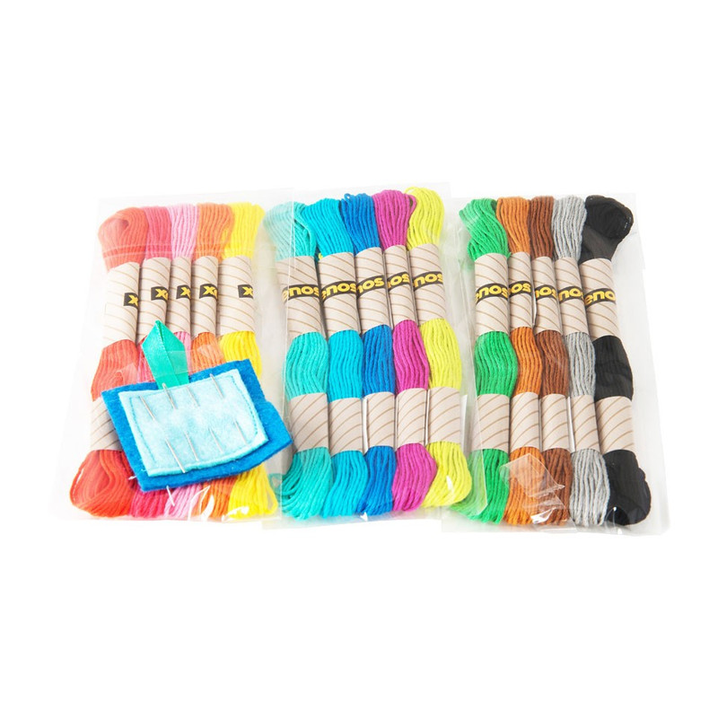 Borduurfans opgelet: met deze borduurgaren set maak je de mooiste borduursels. De set bestaat uit 15 kleuren borduurgaren van 100% premium katoen. Het is 6-draads garen met een lengte van 8 meter per kleur. Daarnaast bevat de borduurset 1 stompe borduurnaald (maat 26), 2 scherpe borduurnaalden (maat 24) en 1 scherpe borduurnaaald (maat 26).