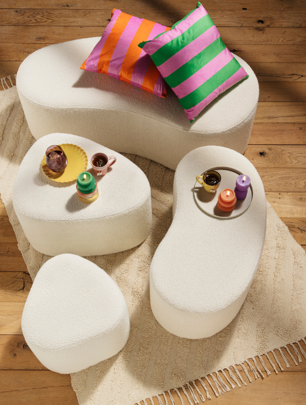 Tip: Naast deze grotere versie van de poef boucle banana, hebben we ook nog een kleinere poef om de combinatie compleet te maken!