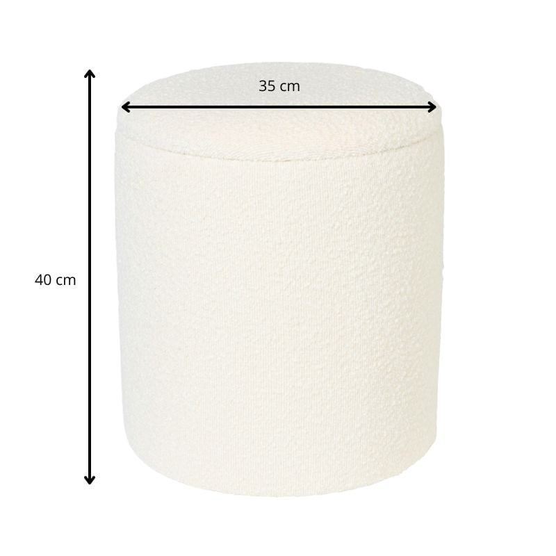 De teddy poef heeft een doorsnede van 35 cm en is 40 cm hoog. Daarnaast heeft de poef een zithoogte van 40 cm, een zitbreedte 35 van cm en een zitdiepte van 35 cm.