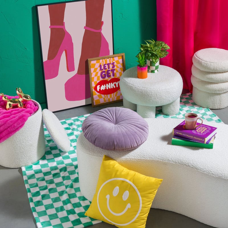 Helemaal on-trend: poefjes van boucle stof! Deze poef is niet alleen een stijlvolle toevoeging aan je interieur, maar ook een praktische oplossing voor extra zitplaatsen en opbergruimte. Met de zachte teddy bekleding voegt deze poef een vleugje gezelligheid toe aan elke kamer en heeft een deksel. Wat ga jij hierin opbergen, je plaids of het speelgoed?