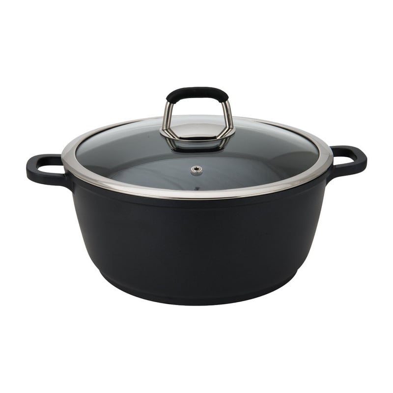 Braadpan van gegoten aluminium is licht van gewicht, maar van zware kwaliteit. De pan is geschikt voor alle warmtebronnen. De pan met glazen deksel is gemaakt van 2.5 mm dik gietalumium en is voorzien van handgrepen. Op de onderzijde zit een 4 mm dikke laag rvs.