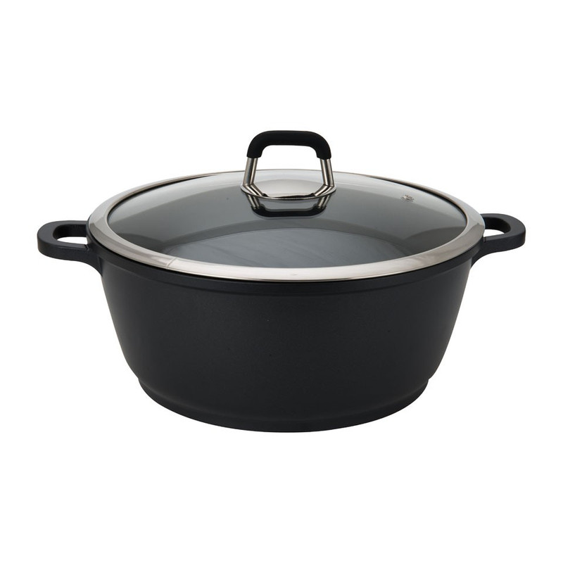 Braadpan van gegoten aluminium is licht van gewicht, maar van zware kwaliteit. De pan is geschikt voor alle warmtebronnen. De pan met glazen deksel is gemaakt van 2.5 mm dik gietaluminium en is voorzien van handgrepen. Op de onderzijde zit een 4 mm dikke laag RVS.