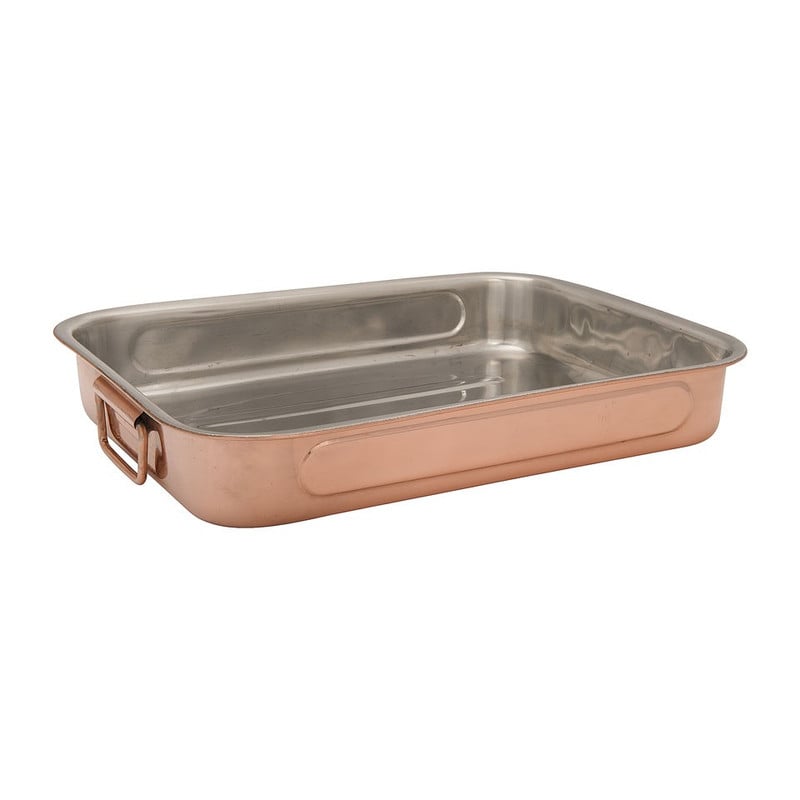 Een grote braadslede is handig om allerlei gerechten te maken. In een braadslede kan je groenten roosteren of een lekker braadstuk bereiden. Doordat deze braadslee van metaal is heeft de slede een goede warmteverdeling. De koperkleurige braadslede heeft handige handvatten die je makkelijk met ovenhandschoenen kan vastpakken. Daarmee kan je de slede makkelijk in en uit de oven halen. * Braadslede koper groot * De afmeting van de braadslede is 27 x 37 cm. * Met handvatten * Geschikt voor de oven
