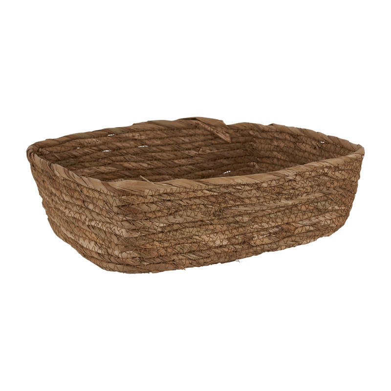 Deze rechthoekige mand is mooi en handig. Gebruik ‘m om broodjes op een mooie manier te serveren of als opbergmandje voor kleine prullaria. De rieten mand is naturel kleurig. Verkrijgbaar in meerdere maten. De afmeting van deze mand is 30x25x10 cm.