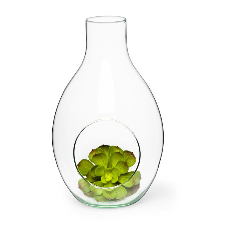 Deze leuke buikvaas is ideaal voor luchtplanten (epifyten). Doe een handje kleine steentjes in de mooie vaas en zet er een kleine luchtplant in of een mooie cactus. De buikvaas heeft een diameter van 22 cm en is 35 cm hoog.