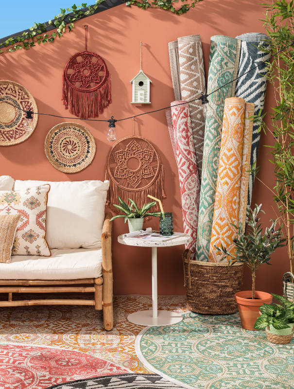 Maak je tuin of balkon gezellig met een rond buitenkleed. Het kleed heeft een leuk printje en is gemaakt van kunststof. Het groene buitenkleed heeft een diameter van 150 cm en is verkrijgbaar in verschillende kleuren en afmetingen.