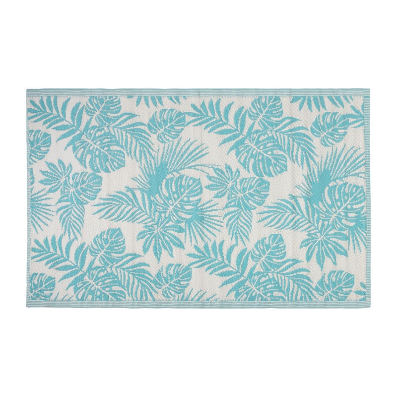 Buitenkleed leaves - blauw/wit - 120x180 cm