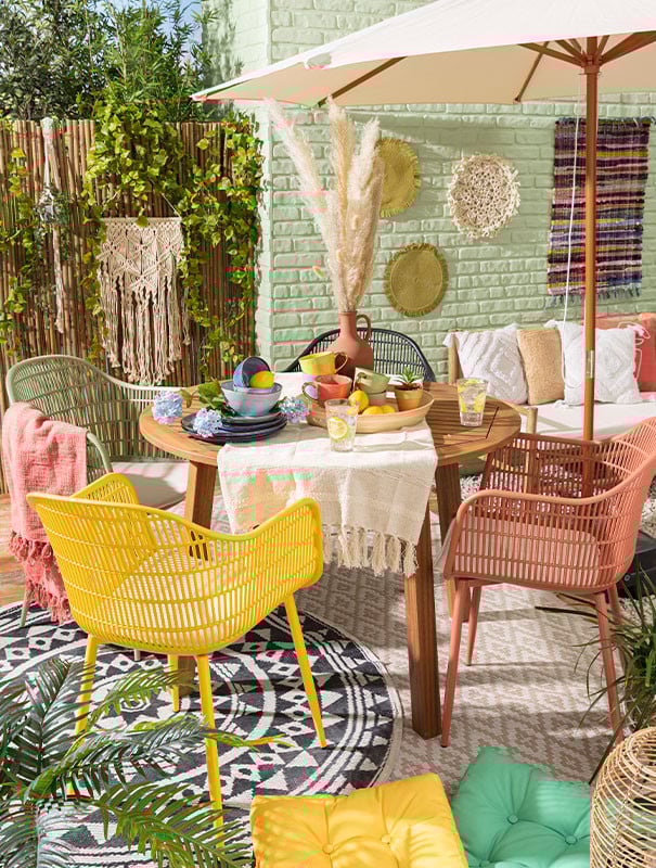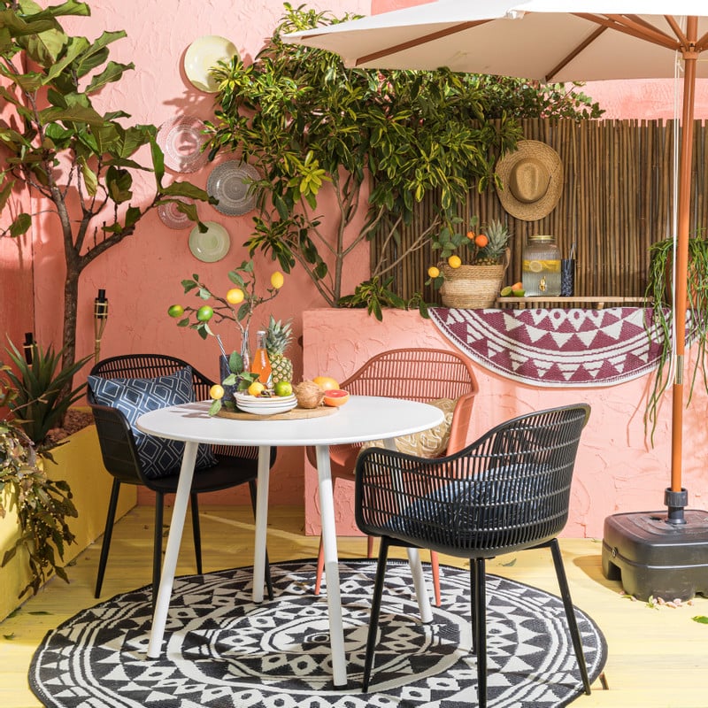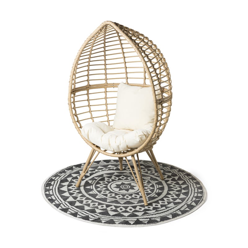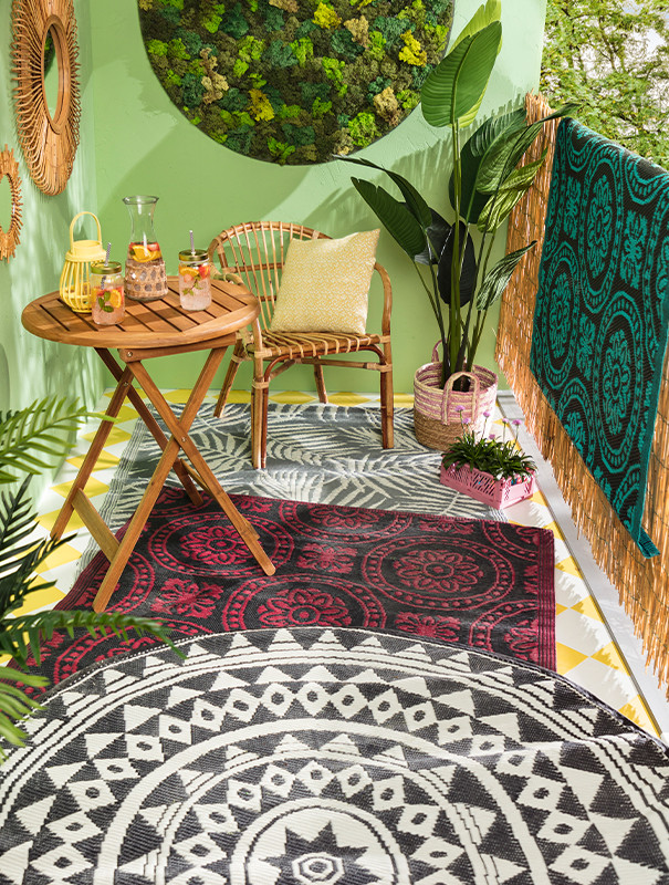 Rond buitenkleed gemaakt van gerecycled kunststof. Super leuk voor in de tuin! Het kleed heeft een diameter van 150 cm.