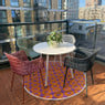 Gemaakt van gerecycled kunststof, is het kleed weerbestendig, onderhoudsvriendelijk en eenvoudig schoon te maken – perfect voor buitengebruik. Het kleed heeft een diameter van 150 cm.