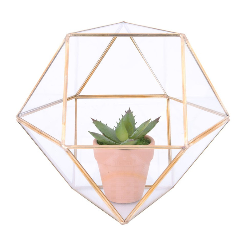 Koop deze trendy cactus in diamantvorm bol bij Xenos! Voordelig en super hip. Je inrichting is weer helemaal hot met de cactus in glazen diamantvorm. Het glazen frame heeft een mooie chique vintage uitstraling. Dit is een trendy item voor op tafel of de vensterbank. De afmeting van de diamant is circa 16 x 16 x 18 cm (lxbxh). Hij heeft een mooie goudkleurige afwerking. En de leuke kleine cactus van kunststof hoeft geen druppel water en blijft altijd mooi groen :-) Handig, trendy en voordelig, gewoon bij Xenos.