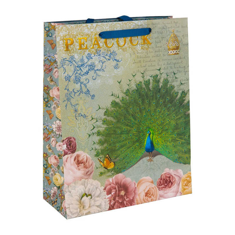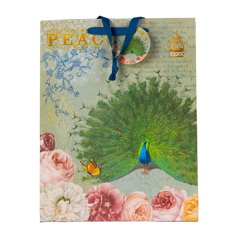 Deze pauw cadeautas is perfect voor het vervoeren van cadeautjes. Het papieren tasje heeft een tof design en is voorzien van linten hengsels.