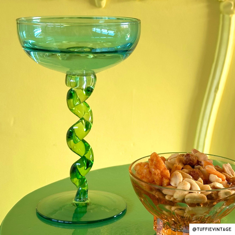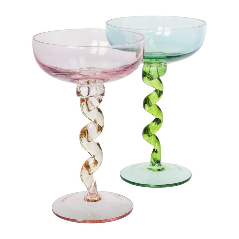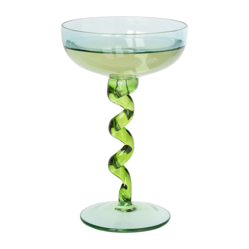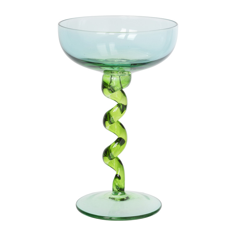 Champagnecoupe met spiraalvoet - blauw/groen - ø9.5x15.3 cm