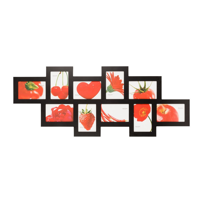 Deze brede collagelijst Daan staat heel erg mooi boven een langwerpige dressoirkast. Of aan een saaie muur. De collagelijst is zwart van kleur en is geschikt voor 10 foto’s. Vijf liggende foto’s en vijf staande, met een afmeting van 10x15 cm. Reken maar dat jouw favoriete foto’s helemaal tot hun recht komen in deze stijlvolle fotocollagelijst.