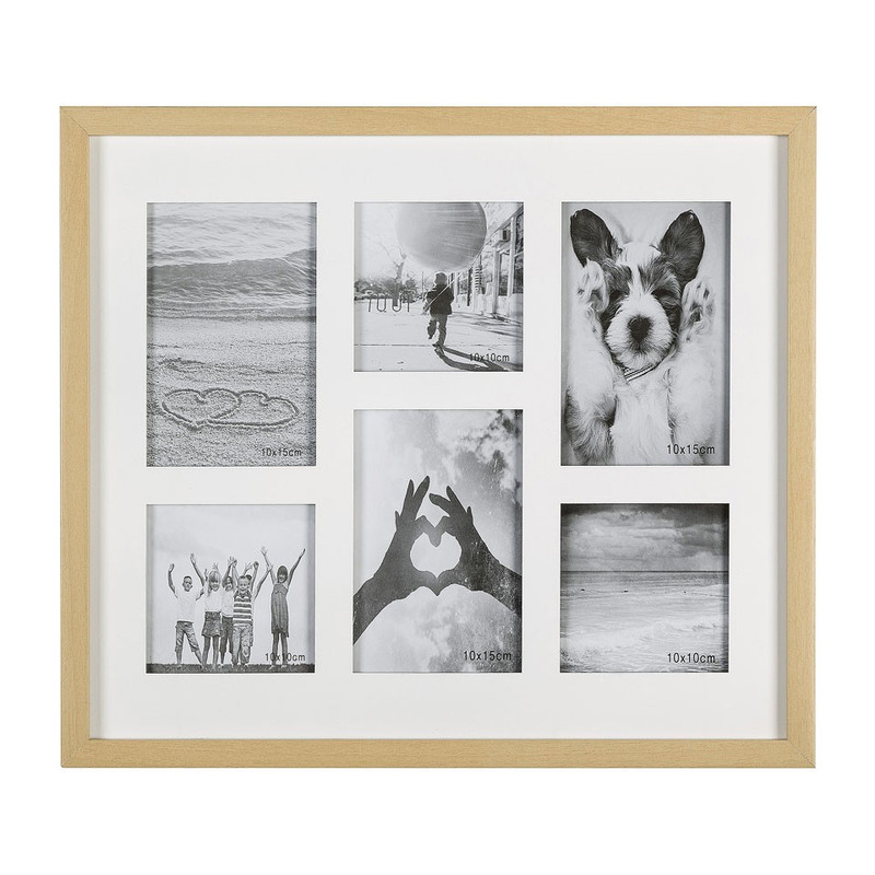 Met een collagelijst plaats je jouw leukste foto’s naast elkaar. Je hebt met deze collagelijst een super leuke fotolijst om op te hangen in huis. Je kan 3 foto’s van 10x 10 en 3 foto’s van 10x15 in het frame doen. Hoe gaaf is het om jouw mooiste vakantiefoto’s bij elkaar op te hangen. Of de mooiste foto’s van jou en je geliefde. Super leuk! De lijst is makkelijk op te hangen met de haakjes en fleurt je huis op.