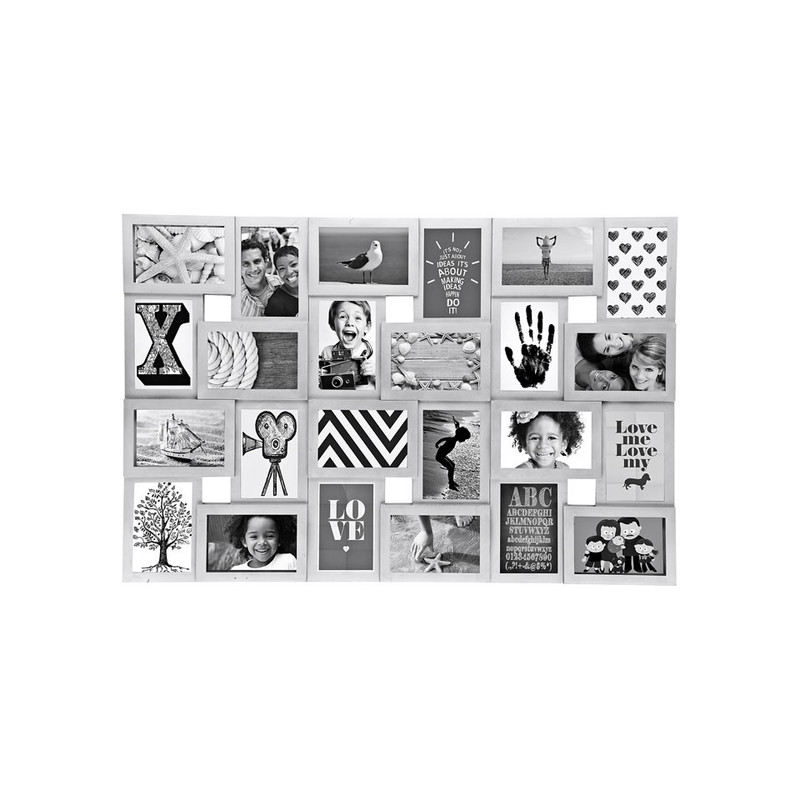 Lijst tot wel 24 foto’s in met deze mooie zilveren kunststof collagelijst. Maak leuke creatieve collages met foto’s, kaartjes en andere leuke creaties die in de fotolijstjes passen. De 24 fotolijstjes in de collagelijst hebben een afmeting van 10 bij 15 cm. Met deze collagelijst heb je de mogelijkheid om je eigen unieke collage te maken die niemand anders heeft.