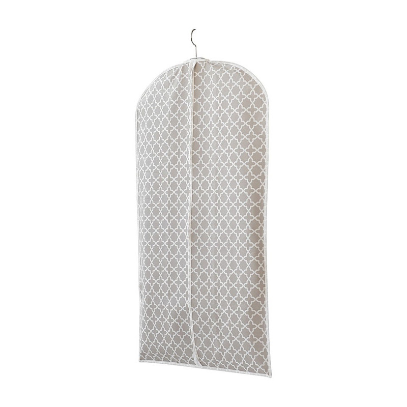 Set van 2 korte kledinghoezen om kleding stofvrij op te hangen in de kast of aan een rek. Handig voor jasjes en truien. De hoes beschermt de kleding van stof en licht. Het beige-wit motief is chic en modieus. De stof is in non-woven 100% polypropyleen.