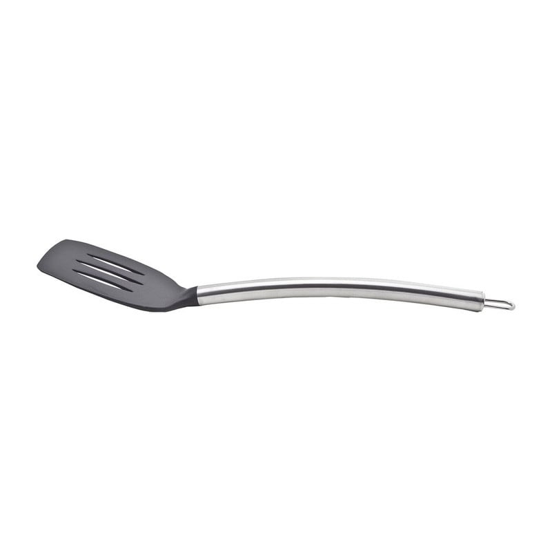 Deze spatel met openingen uit de Belgrado reeks combineert de kwaliteiten van nylon met die van roestvrij staal. Nylon krast niet, waardoor het ook voor potten en pannen met een antiaanbaklaag aanbevolen wordt, en is licht in gebruik. Roestvrij staal heeft een tijdloze uitstraling en is slijtvast. De spatel gebruik je voor het opscheppen van vlees, vis en groenten. Vocht blijft bij het opscheppen mooi in de pan dankzij de openingen in de spatel. Heb je de spatel niet meer nodig? Hang ze dan na reiniging opzij met behulp van het ophangoog.