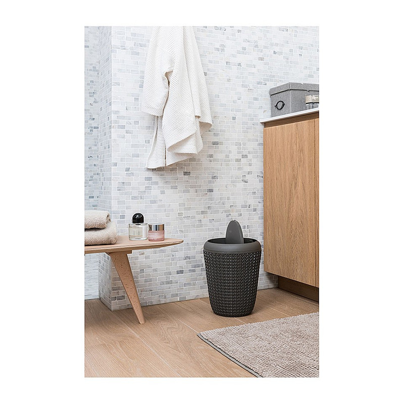De Curver KNIT 6L afvalbak is zeer handig voor in de badkamer. Door de ergonomische deksel is een eenvoudige opening gegarandeerd. Het exclusieve Knit patroon samen met de onzichtbare vuilniszakhouder zorgen voor een nette uitstraling in uw badkamer! Verkrijgbaar in oasis white, harvest brown en misty blue.: