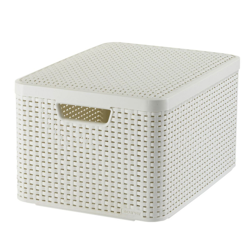 De Curver Style opbergmand met deksel M, biedt een stijlvolle opbergmanier voor in het hele huis. De mandjes hebben een moderne rieten uitstraling, maar hebben de voordelen van kunststof. Ze zijn voorzien van twee handgrepen aan de korte zijde voor extra draagcomfort. Een additioneel voordeel is dat ze gemakkelijk te stapelen zijn.