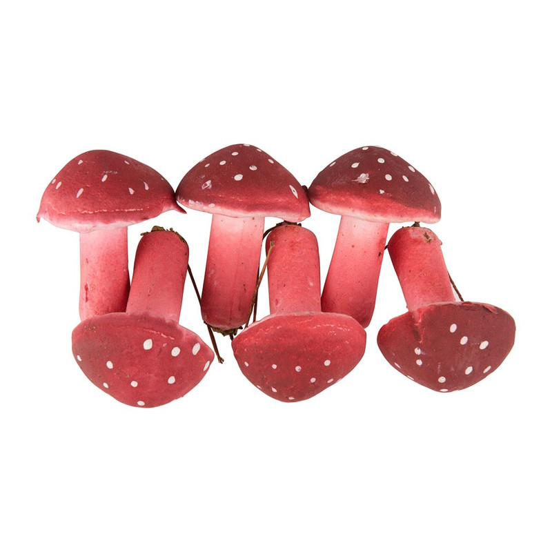 Dit zakje met 6 paddenstoeltjes is perfect om een leuk herfstdetail te geven aan uw huis. Met 6 paddenstoelen van 6 centimeter past het perfect in uw huis voor een echt herfstfestijn! Gemaakt van kunststof.