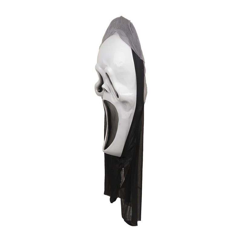 Lekker griezelen op Halloween? Met dit decoratiemasker aan de muur creëer je heel gemakkelijk een enge sfeer in huis. De afmetingen van het masker zijn 107x54x20 cm. Het masker is gemaakt van kunststof en heeft een stoffen mantel, daarnaast is het masker voorzien van een band voor bevestiging.