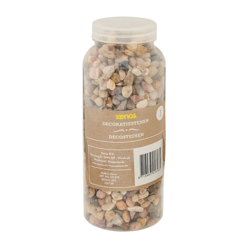 Decoreer jouw schaal met kaarsen helemaal af met decoratiesteentjes van Xenos. Of gebruik de steentjes als opvulling voor bij jouw cactus of vetplantje. De fijne steentjes hebben een beige kleur en ze zijn makkelijk te combineren met andere woondecoratie. In de plastic verpakking met hersluitbare dop zit in totaal 1 kg.