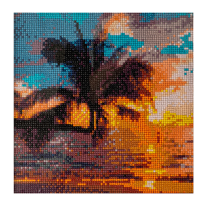 Steek de creatieve handen uit de mouwen en maak je eigen diamond painting! Het eindresultaat? Een prachtige zonsondergang aan zee.