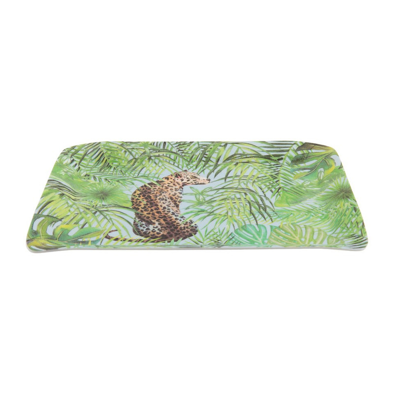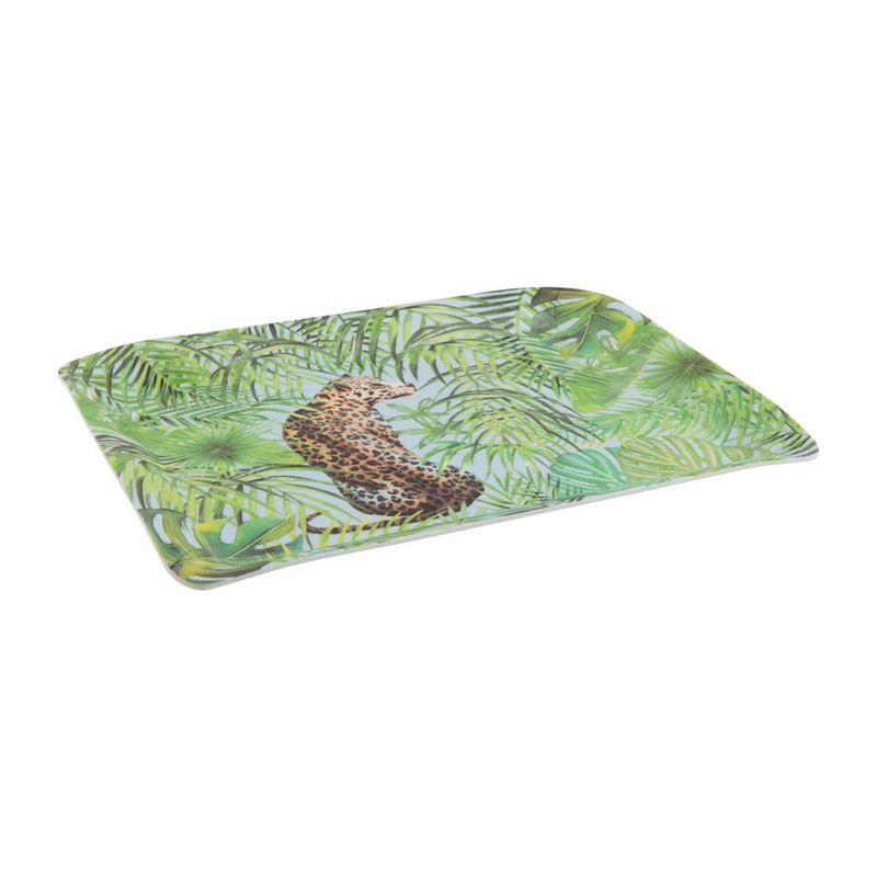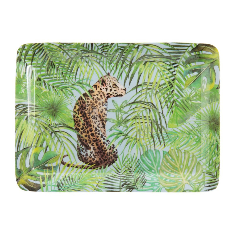 Dit dienblad met tropische luipaard print geeft je het gevoel van de jungle! Handig voor al je hapjes en drankjes! Het dienblad heeft een afmeting van 31.5x23 cm. Xenos heeft een uitgebreid assortiment dienbladen en producten in deze tropische serie, bekijk ze allemaal!