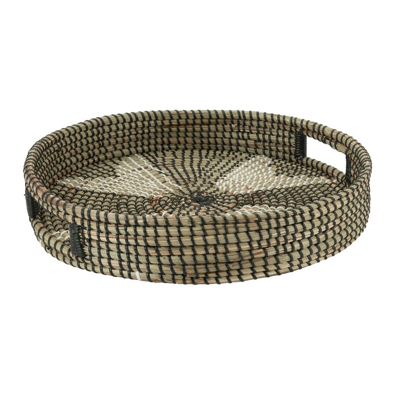 Serveer de drankjes met dit hippe dienblad gemaakt van het natuurlijke materiaal zeegras. Dit exemplaar heeft een diameter van 40 cm en heeft een wit met zwarte print. Ook leuk ter decoratie met allemaal accessoires erop. Zet deze bijvoorbeeld op de salontafel of buiten in de loungehoek.