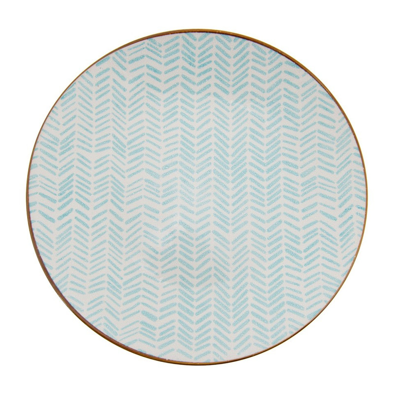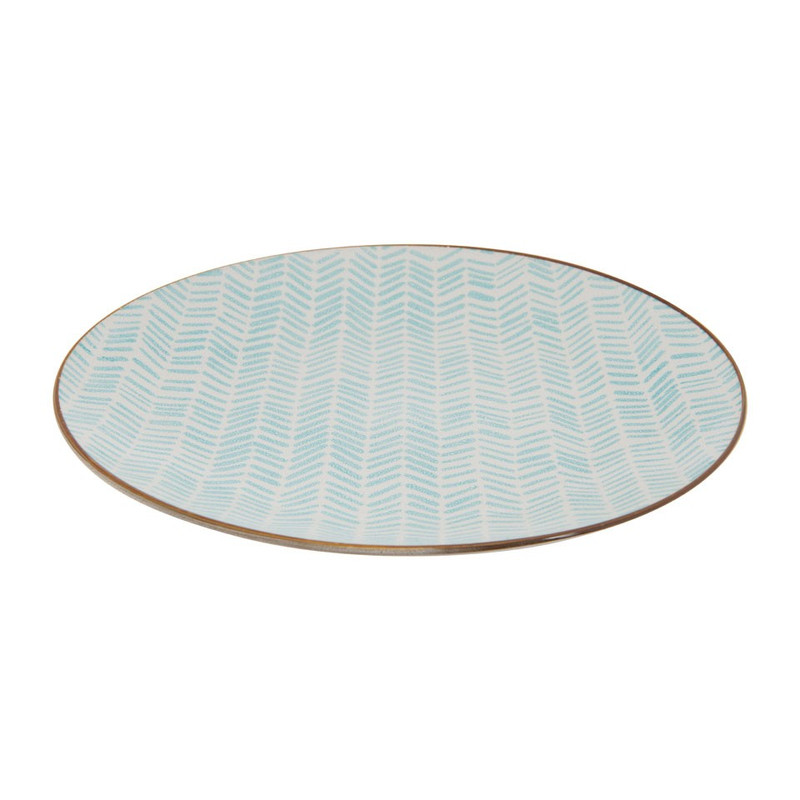 Dineren doe je in stijl met dit leuke turquoise dinerbord uit de Yasmine serie. Het bord heeft een diameter van 26.5 cm en is gemaakt van stoneware. Dit is een erg stevig materiaal. Het bord heeft een gestreepte opdruk en een bruine rand. Combineer met de andere artikelen uit deze serie om er een gezellig geheel van te maken.